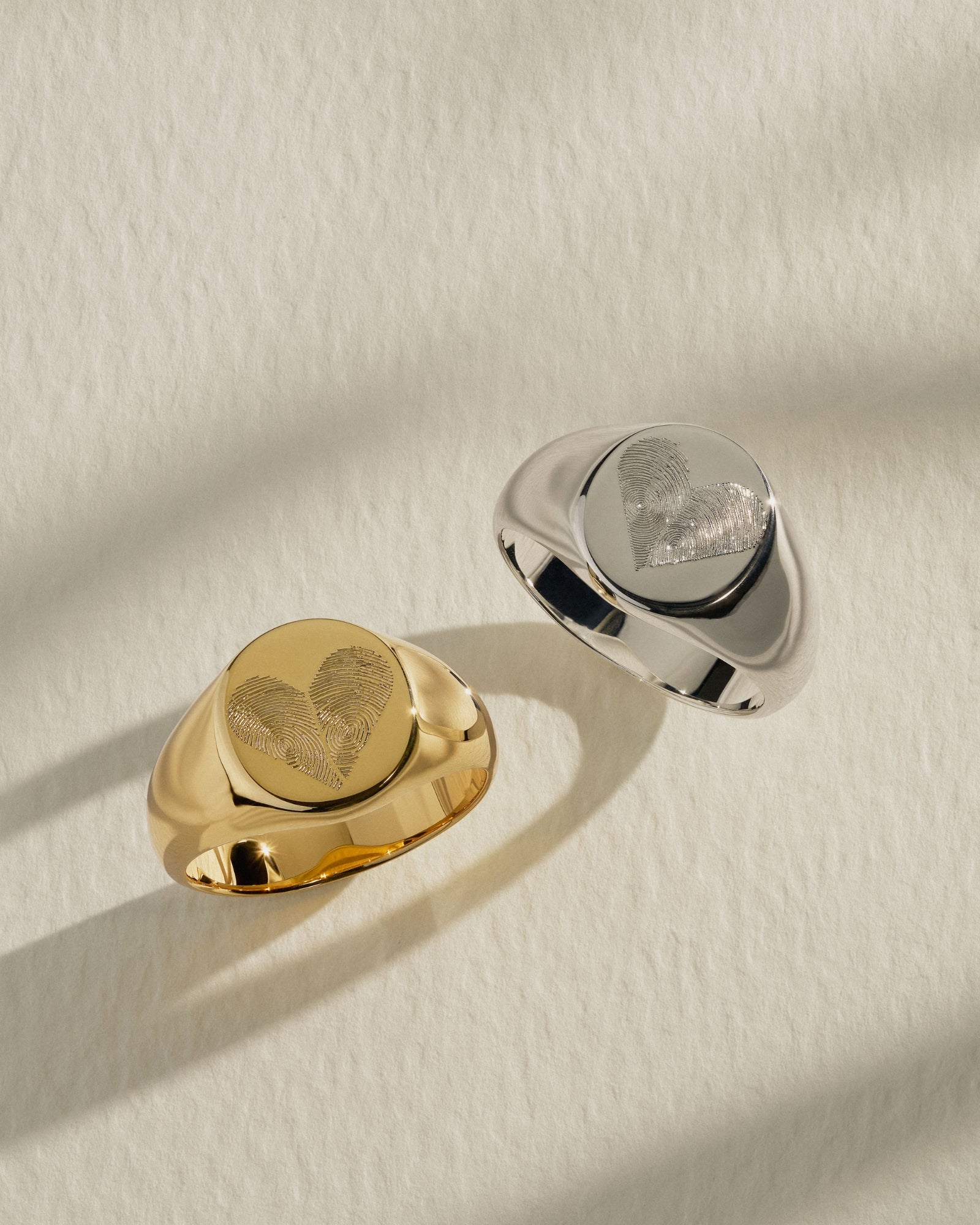Our 18k Gold Vermeil Collection is durable enough for daily wear, yet refined enough to be a true luxury investment. Each piece is diamond-engraved with the mark of someone you love, be it your newborn’s handprint, your partner’s fingerprint, or a meaningful handwritten message.