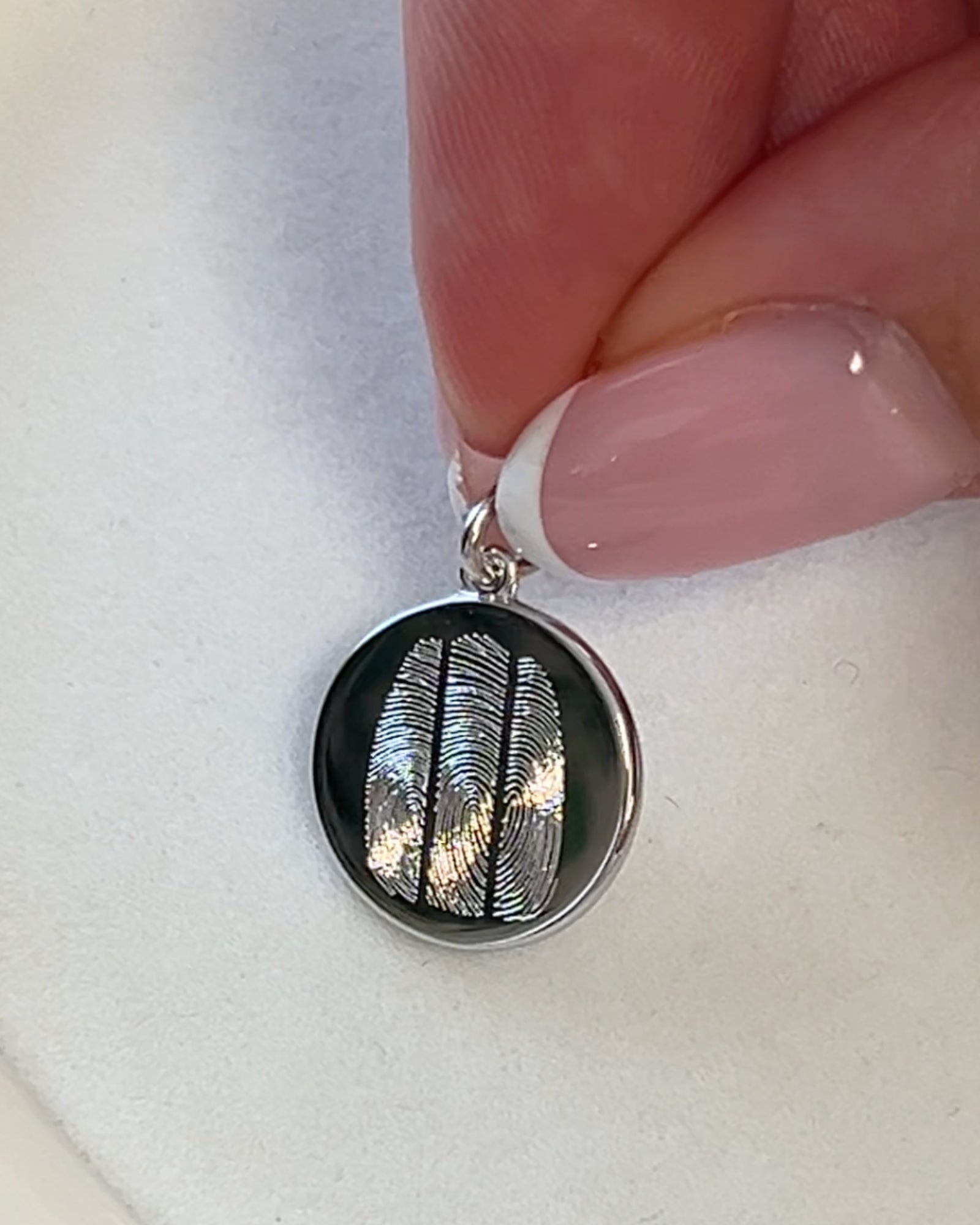 Each pendant is diamond-engraved with the fingerprint of three people you love - your children, your siblings, or people you never want to forget. Made to mirror the real prints in exact detail, every piece is made to order with exceptional care in our Sydney studio.