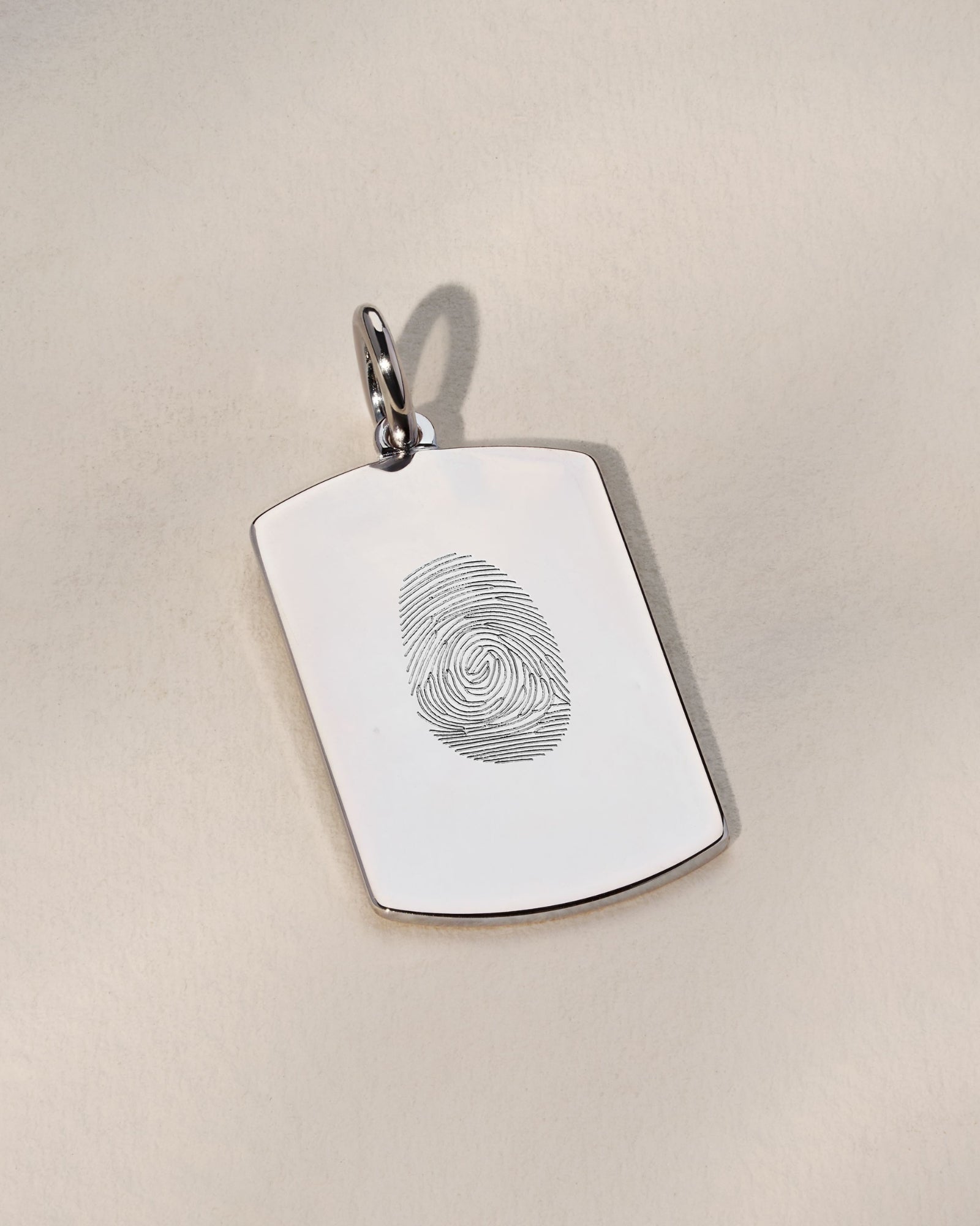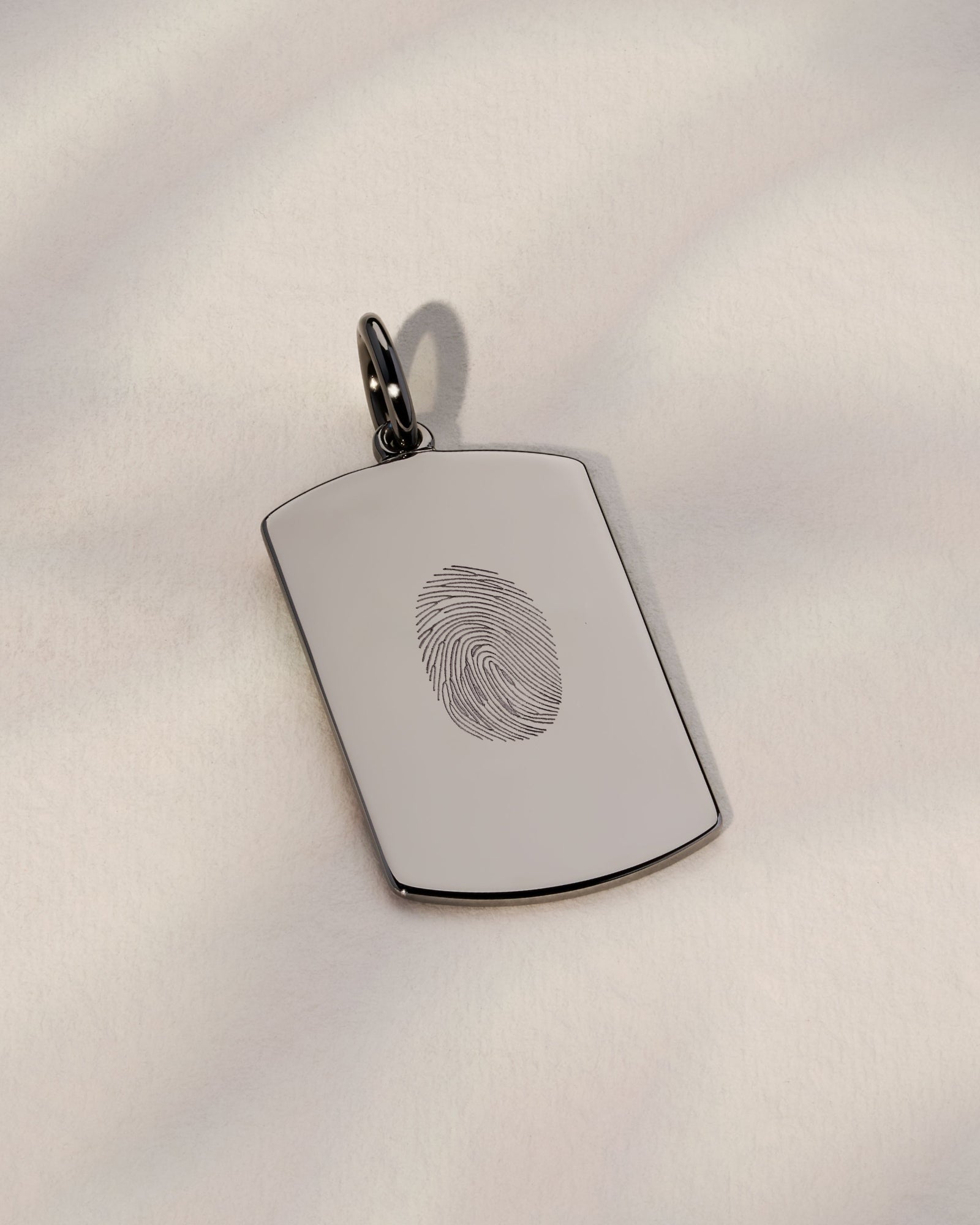 Our Classic Fingerprint Tag Pendant is more than just metal, it’s a personal heirloom, crafted to carry the imprint of someone who matters most.