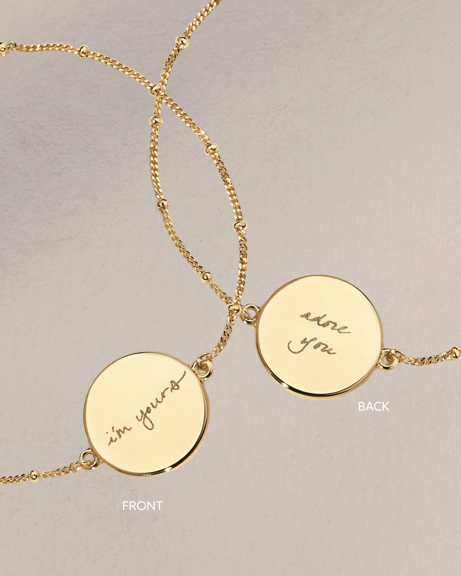 Each bracelet is diamond-engraved with the handwriting of someone you love, taken from a heartfelt note, a love letter, or a message you never want to forget. Made to mirror the original writing in every detail, each piece is carefully crafted to order in our Sydney studio with exceptional care.