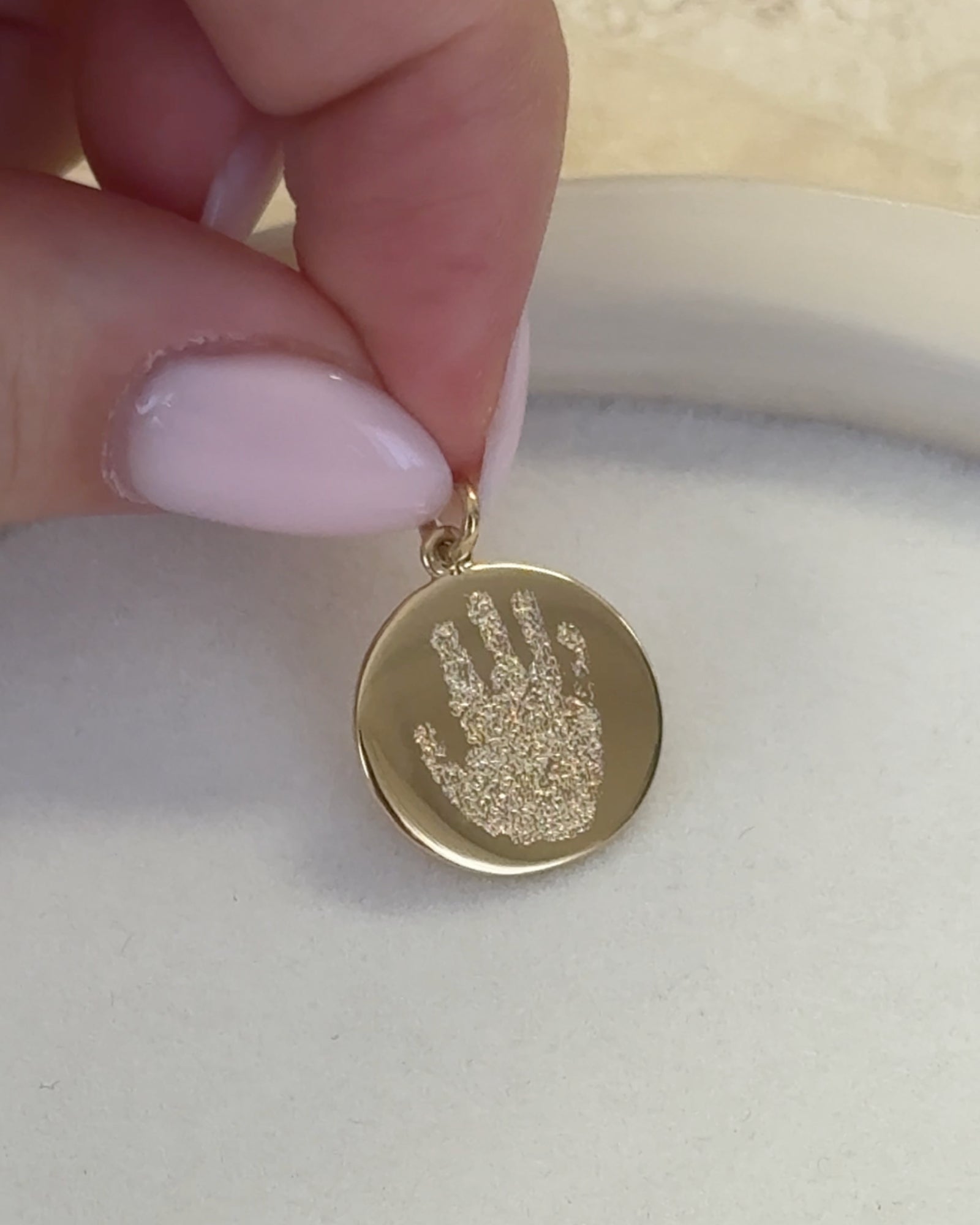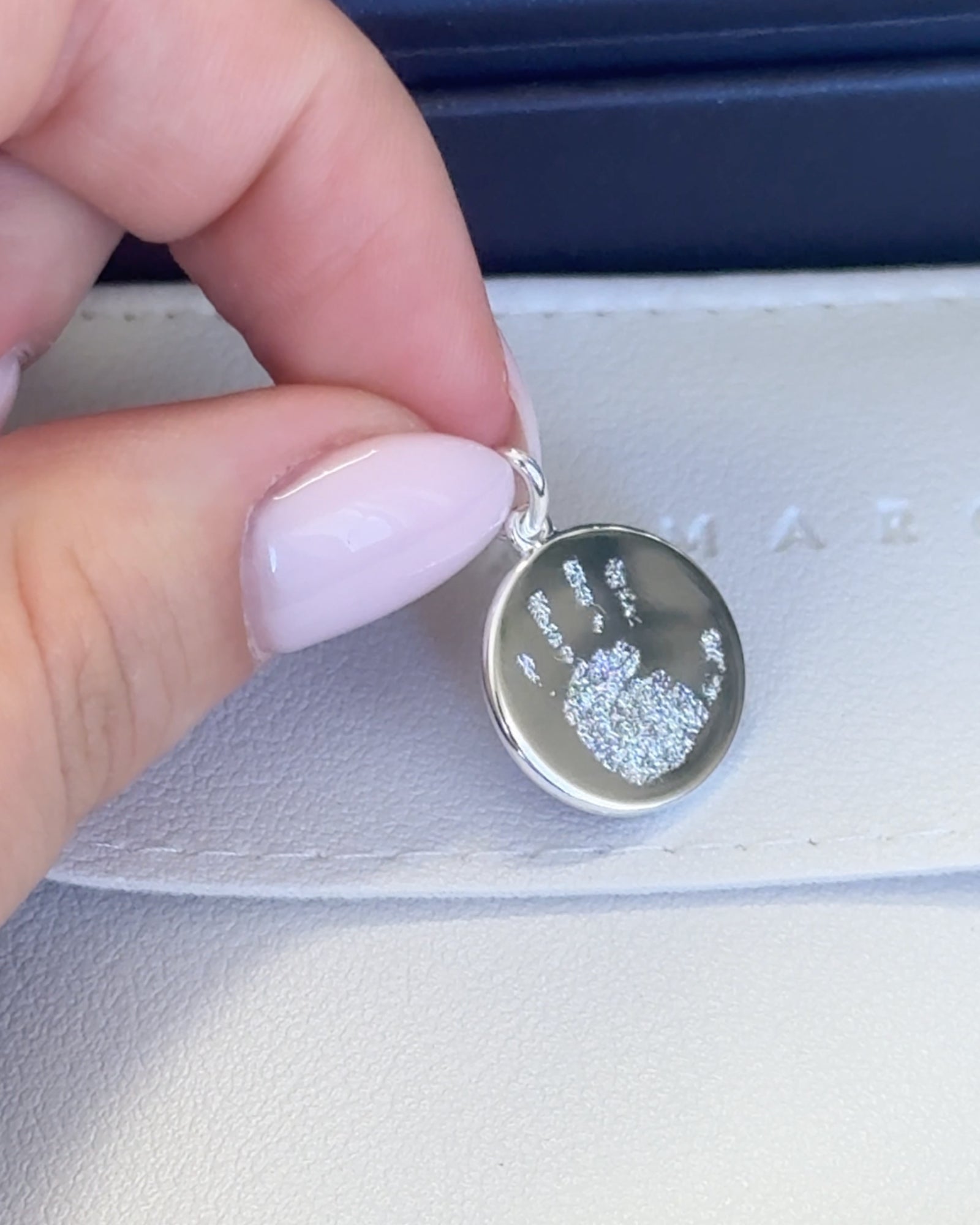 Whether you’re celebrating their first milestones, marking the day they came into your world, or simply keeping their memory near, this pendant holds their handprint forever.
