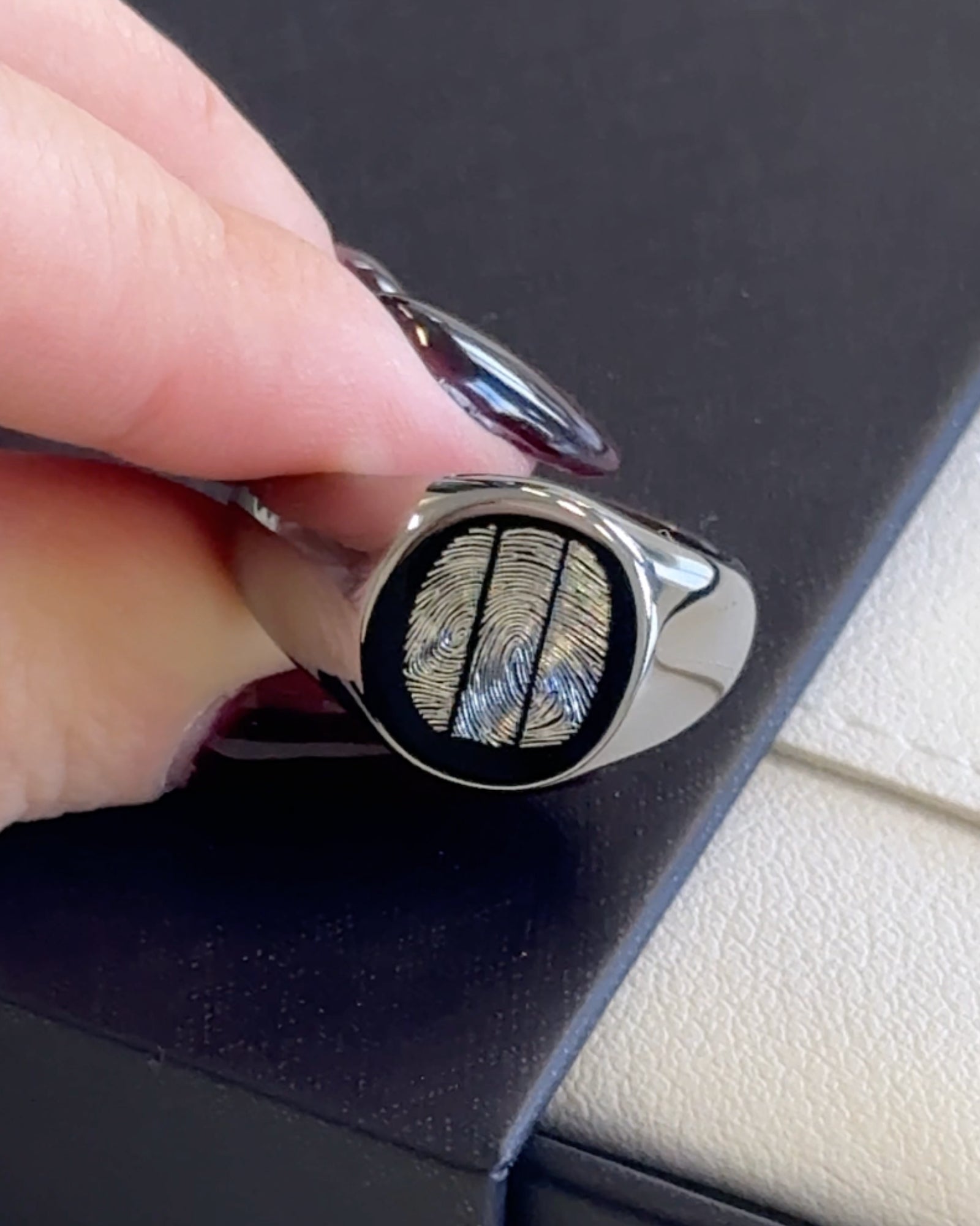 Each ring is diamond-engraved with the fingerprint of three people you love - your children, your siblings, your parents, or three loved ones you hold close. Made to mirror the real prints in exact detail, every piece is made to order with exceptional care in our Sydney studio.